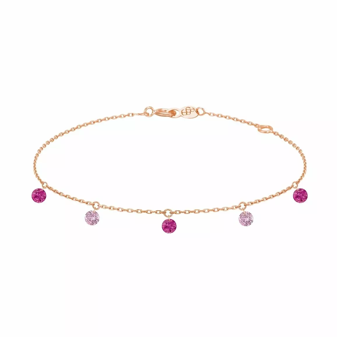 Ce bracelet de la collection Confetti présente 5 pierres naturelles : 3 rubis et 2 saphirs roses pour un poids total de 0,65 carat.