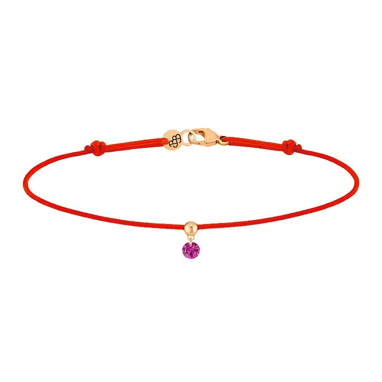 Bracelet La Brune et La Blonde cordon rouge en or rose et rubis